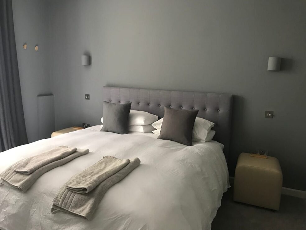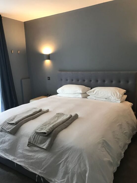 But don’t forget to sit back and enjoy the comfortable sofas and chairs in the living space which also has a large, web-enabled TV. You will need to use your own accounts to use premium services such as Netflix and Amazon Prime. The large bedroom boasts a luxurious, super-king bed and a semi-frosted bay window to the rear which floods the room with light.