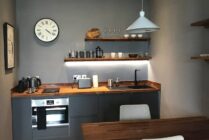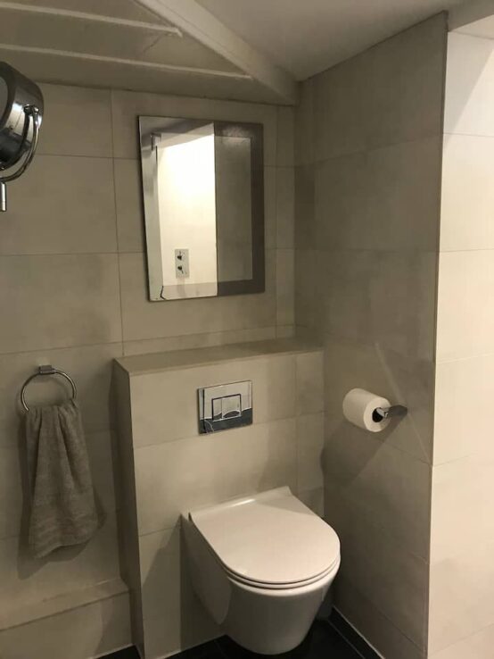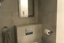 There is a bijou, separate bathroom with walk-in shower, heated towel rail and heated shaving mirror. There are also USB ports in various plug sockets throughout the apartment to making charging easy.